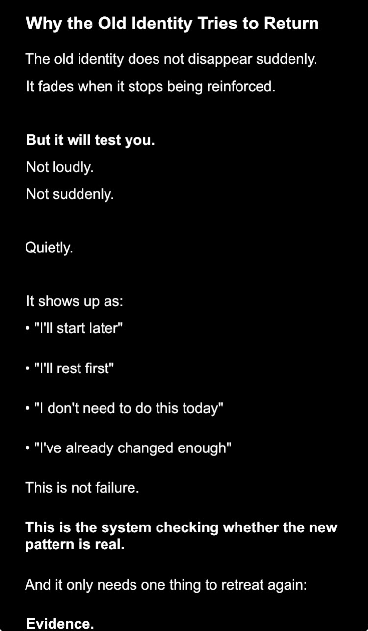 Trusting yourself to follow through - When you say "I'll do this," you actually believe it. And more importantly, you DO it. Self-trust rebuilds automatically through evidence.